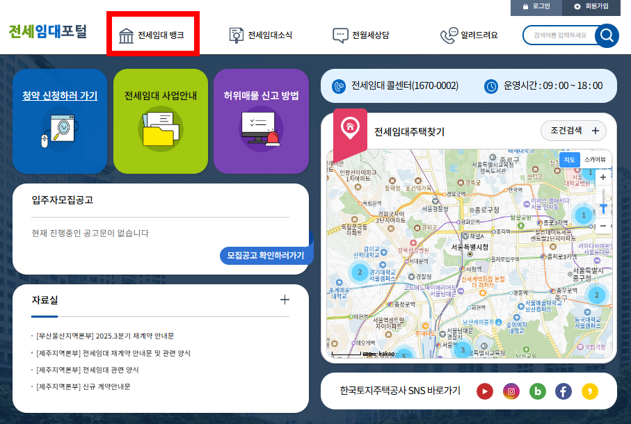 1. 전세임대뱅크-중개업소 검색을 선택해 주세요.